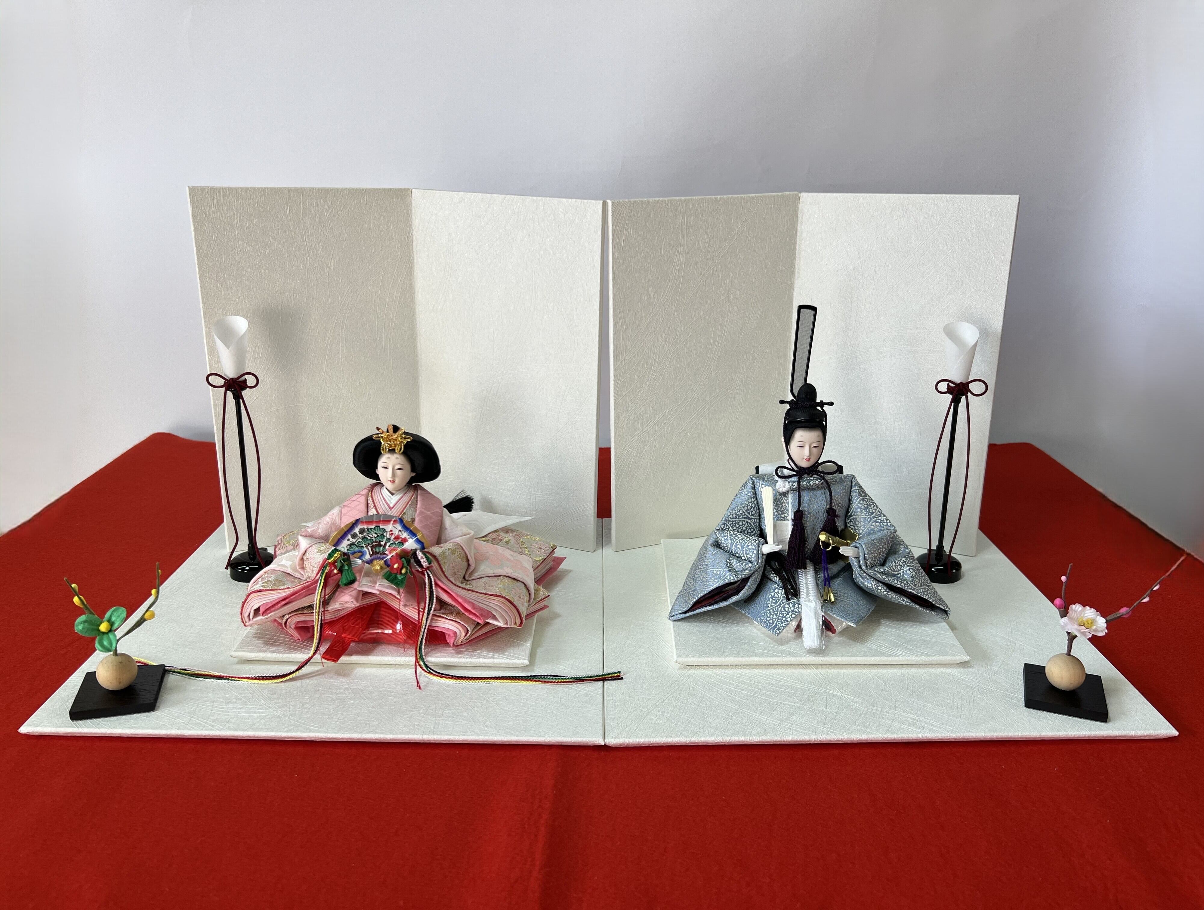 道具もシンプルに、そしてお雛さまを引きたてるように真っ白なキャンパスのようなお道具をご用意しました。